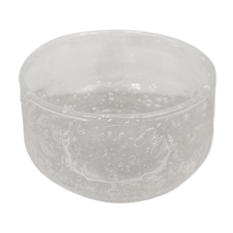 Soliflore vase of the 70s, molded glass, by conny walther for pukeberg glassbruck, height: 11cm, width: 11.5cm, thickness: 3.5cm, perfect condition.