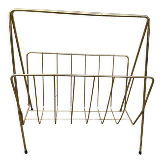 Brass magazine rack. Vintage from the 50s/60s. Bamboo handle. The brass is slightly pitted.