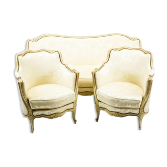 Small two-seater toad sofa. Pretty cashmere pattern fabric, and upholstery fringe. Very good condition.