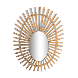 Vintage rattan mirror, in the shape of an eye. It is in good condition.