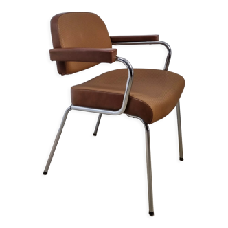Pair of Unimob Lingua armchairs, marked “Assembly 97” on the label under the seats. Chrome-plated tubular metal frame, black vinyl seat and back, integrated armrests. Simple design typical of the 80s, ideal for an office, living room, entryway, or professional space. Very good condition for their age: some minor signs of wear, nothing significant, no tears.