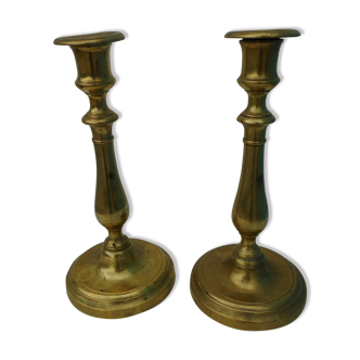 Pair of small candlesticks in chiseled gilded brass. A little refined touch on a thread, a side table... Beautiful vintage state with minimal time marks on the base. Dimensions: 12 cm X 8 cm X 8 cm.