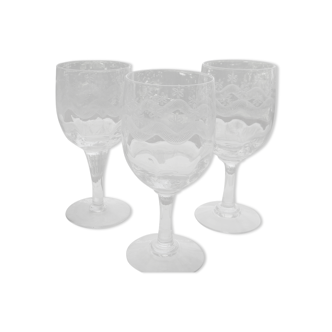 Series of 6 carved glass stemmed glasses dating from the mid-twentieth century.