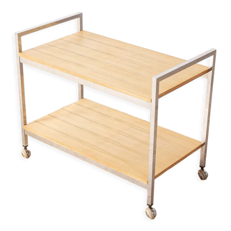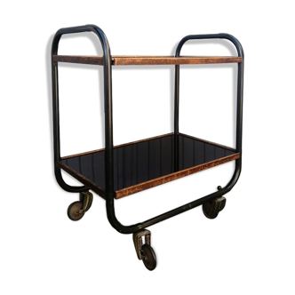 Folding rolling table. French work from the 1980s. Very good condition with slight signs of use related to its age. Dimensions: Dimensions (open): height 61 cm, length 69 cm, width 44 cm.