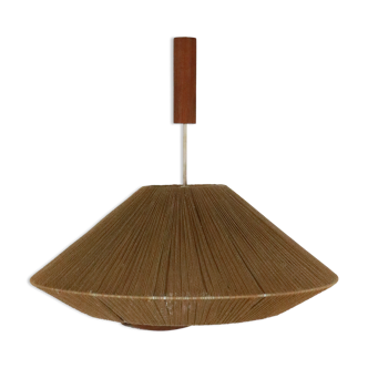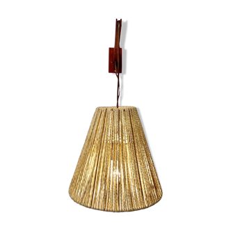 Rope suspension of the 60s, bayonet bulb, to re-electrify (does not work as is but very simple to change the socket system), diameter 30cm, height 8cm.
