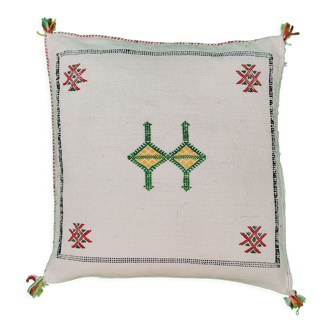 Berber sabra cushion in cactus silk, handmade in Morocco from plant fibers. Ideal for a living room or bedroom to add a touch of authenticity. Style: sabra cushion. Condition of the cushion: new. Composition: cactus silk. Natural dye. Handcrafted. Berber cushion cover delivered without filling. Several similar Moroccan cushions are available (see the products in my shop).