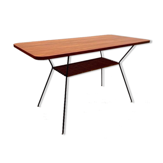 50s/60s rattan desk, all curved and its large wooden top. A niche under the tray. Good general condition, traces of wear and stains which are part of its past. Dimensions: width 53 cm. Length 86 cm. Height 74 cm.