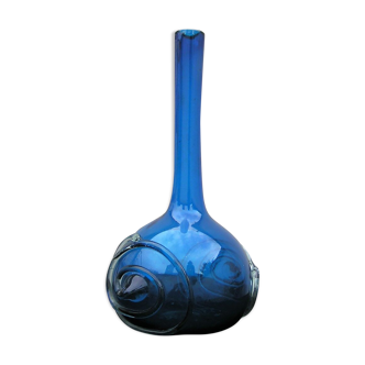 Vintage bottle, transparent glass with a very pale aqua hue. This bottle has an atypical shape and a beautiful color! Good condition and clean. It measures. 12 cm in diameter X 21 cm high. It contains just over 50 cl.