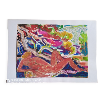 Huile sur toile originale suédoise – « Interstice » de N. Skoog – Signée et datée de 1967 – Encadrée – 104 × 91 cm (40, 9" × 35, 8") Une composition vibrante et expressive de l'artiste suédois N. Skoog, peinte à l'huile sur toile, signée et datée de 1967. « Interstice » regorge de détails colorés et d'une énergie picturale intense, offrant un jeu dynamique de formes et de couleurs. L'œuvre invite le spectateur dans un espace visuel riche et complexe – un instant suspendu entre abstraction et émotion. Présentée dans son cadre d'origine, elle est en bon état et porte les marques naturelles du temps, conformes à son époque. Détails. 🖼 Technique: Huile sur toile. ✍ Artiste: N. Skoog (signé et daté 1967) 📍 Titre / Motif: Interstice. 📏 Dimensions (avec cadre): 104 × 91 cm (environ 40, 9" × 35, 8") 📦 État: Bon état vintage. 🖼 Présentation: Encadré. Artiste et provenance. Skoog est un peintre suédois reconnu pour son utilisation audacieuse de la couleur et ses compositions expressives. Son œuvre de la fin des années 1960 témoigne d'une approche moderniste affirmée, alliant profondeur émotionnelle et rythme visuel. Note du collectionneur. Toutes les œuvres de notre collection sont anciennes ou d'occasion. Bien que les défauts majeurs soient signalés, les marques naturelles du temps — telles que la patine ou l'usure de la surface — font partie intégrante de l'histoire et du charme uniques de chaque pièce.