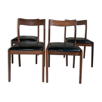 Bovenkamp Vintage Design Teak Wooden Dining Chairs with Leather Upholstery