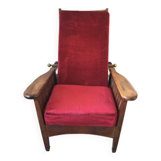 Early 20th century theater armchair in its original condition. The seat is incredibly comfortable. The ergonomics of the backrest have been very well calculated to optimize pleasant seating. The velvet fabric is old and partially discolored. The seat is in skai and was redone in the 60s. Modernized with a contemporary fabric, this armchair is perhaps a gem. This can also be kept as is and will do its job perfectly. Dimensions width 59 cm, height at the back 86 cm, depth with seat in function 58 cm, folded 40 cm. Do not hesitate to contact me for additional information.