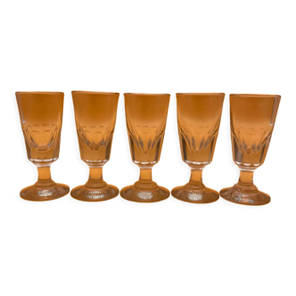 Superb set of 5 mini champagne flutes in blue glass. 60s-70s. In perfect condition. Very nice set. Fast & very neat shipping.