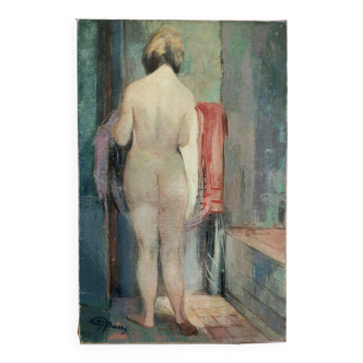 Large format modern art oil painting, female figure on the beach, 20th century