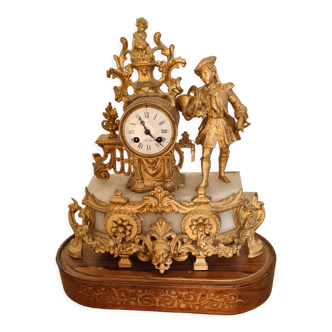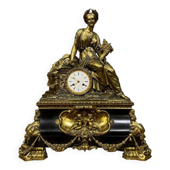 Napoleon 3-era black marble clock and matching candlesticks. Also called a notary clock. The candlesticks are in regulation. The whole is to be revised and restored because a slight shock on the marble of a candlestick and the elements regulate are a little damaged.