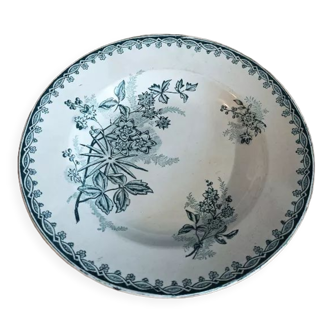 Set of 6 vintage earthenware plates, the Amandinoise, Margot model, floral pattern colored dark blue-green 2 plates of the lot have a slight chip without gravity