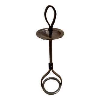 Brutalist-style wrought iron lamp base, handcrafted, 1960s. The moon-shaped structure rests on a circular base pierced with three openings. Total height up to the socket: 46 cm. Equipped with a bayonet socket, electrical system in good condition.