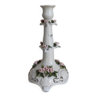 Old grayed white patinated candle holder