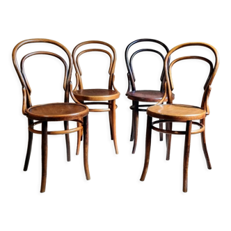 5 "half" bistro chairs, mismatched, 1910 to 1930 - Caned (4 Thonet)