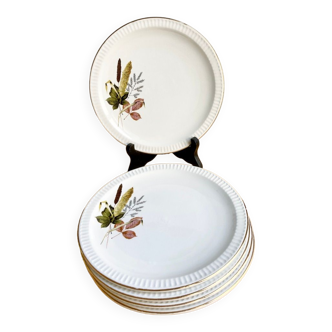 Set of 15 plates (including 3 with small gaps), fine sologne porcelain, lamotte model, feather decoration and foliage. Diameter 23cm. I also have dessert plates and coffee service available.