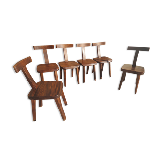 Set of 2 chairs t. In the taste of olavi hanninen. Brutalist style of the 50s/60s. Some marks of use are to be noted. Ideal around a farmhouse table with other mismatched chairs.