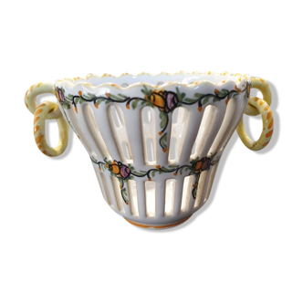 A free-standing fruit basket. In enameled stoneware unique handmade pieces, they may have slight variations in shape, color and thickness.