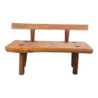 Bench in solid elm from aranjou made in france beautiful wide and comfortable seat with its t-shaped back seat top 4.5 cm thick height under seat 40 cm seat depth 38 cm.