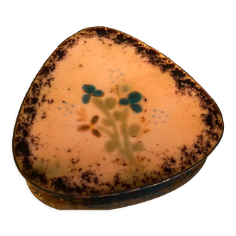 Brown ceramic trivet with patterns carved into the material. A small chip on the bottom: see photos. Size: 16.5 cm wide. Feel free to look at all my listings. Very carefully shipped with bubble wrap. For shipments outside of France, contact me for the price.