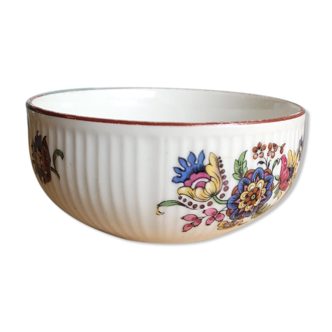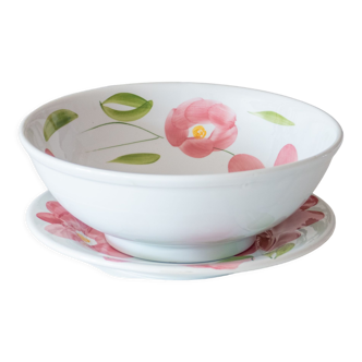 White ceramic salad bowl with pink relief decoration in pink, yellow and green colors signed below villeroy and boch. Ideal for your table in spring. I remain at your disposal for any further information.
