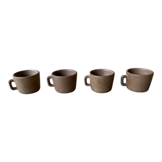 Superb set of 2 small ochre yellow coffee cups bistro style. Their shape makes them timeless pieces and their color allows them to match many interiors by bringing a touch of sunshine! They are in perfect condition and have no shine. Dimensions: height: 5.8cm / diameter: 6.5cm / width with handle: 8.5cm. Weight of each piece: about 160g. Buy in bulk and save on shipping costs!.