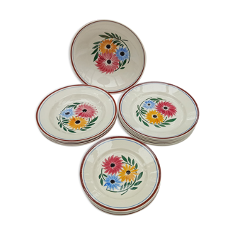 Standing cut, floral decoration, hand painted, gien, france, butterfly model, cream color, green border. No impact, no crack, good general condition.