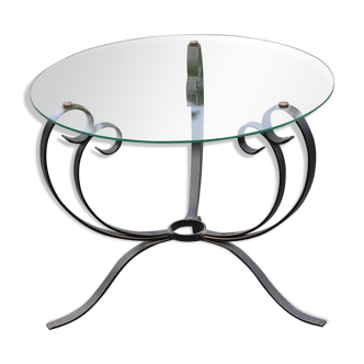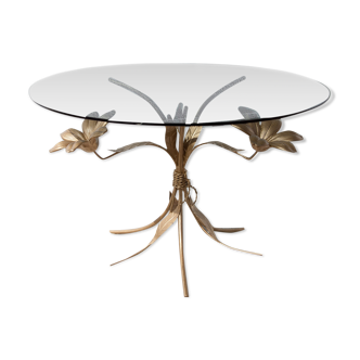 Pretty round coffee table on top of glass placed on a metal base representing one of the ears of wheat. It is of recent manufacture of the 90s. It is reminiscent of a 1970s coffee table from a famous parisian house! Not being a new product it can present marks of time and use but nothing to report. It measures: 74cm in diameter X 54cm in height.