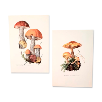Two old engravings of watercolor mushrooms nineteenth century after G. Bernard