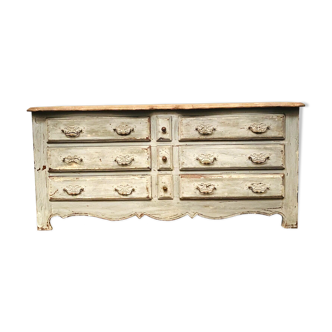 Wooden sideboard, small storage unit, vintage drawer cabinet. Small storage unit, old dressing table with drawers. Measurement: length 101 cm, total height 76 cm, height (without high rim 69 cm), depth 44 cm. Weight: 20 kg approx. Good vintage condition, (patina, missing on rim, traces of use) see photos.