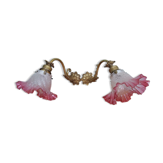 Authentic ancient tulip applied. Length: 34 cm. Tulip diameter: 15 cm. Base diameter in contact with the wall: 9 cm. This base is swivelling the applicator is therefore steerable.