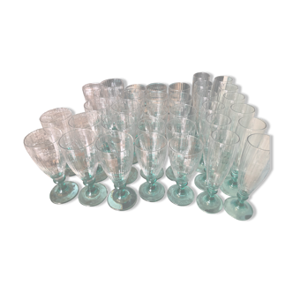 The set of crystal glasses was made in the 1970s in Italy. An elegant crystal glass set: 12 champagne glasses, 12 wine glasses and 11 liqueur glasses – a total of 35 pieces in a classic vintage style. Subtle cuts and a sturdy design make this a unique collection for special occasions or for a stylish dining room. Condition: Items are in their original condition and may have minor scratches and normal signs of wear. Dimensions: 15 X 7 cm. 19 X 5 cm. 12 X 4.5 cm.