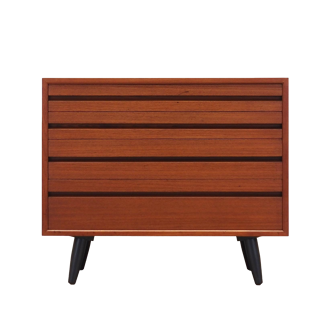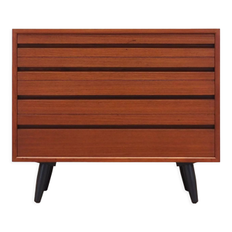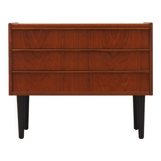 Scandinavian dresser, vintage. Materials: teak (painted black by the original owner) Dimensions: l 64 – p 29 – h 66.5 cm. Period: 1960. Condition: good condition. Fully restored with love! Patina: normal wear and tear of time.