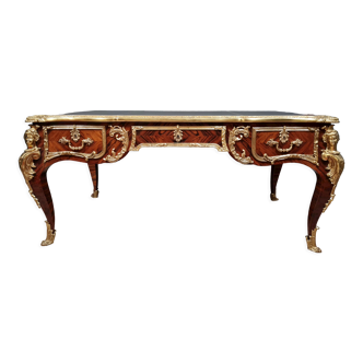 Late 19th/early 20th century edwardian desk with lion paw feet introduce timeless elegance into your workspace with this late 19th to early 20th-century edwardian desk. Crafted from a combination of solid beech and cherry wood, this piece exudes a refined yet sturdy presence. Its luxurious leather top, framed by intricate wood detailing, provides both style and functionality. The desk is elevated by striking lion paw feet, a hallmark of regal craftsmanship from this period, making it a stunning addition to any study or office. With two spacious drawers accented by ornate brass pulls, this desk offers practical storage while maintaining its antique charm. The rich wood tones combined with the leather surface create a warm and inviting workspace, perfect for modern or period-inspired interiors. Key features: authentic edwardian design: dating from the late 1800s to early 1900s, this desk captures the grandeur of the edwardian era. Premium materials: constructed from beech and cherry wood, with a leather top. Lion paw feet: elegant and detailed lion paw legs, a signature feature of antique craftsmanship. Ample storage: two drawers with decorative brass handles for convenient storage. Impressive dimensions: height 26.4 inches, width 68.9 inches, depth 37.8 inches. Versatile use: ideal for use in home offices, libraries, or as a statement piece in living areas. Why you'll love it: antique character: the desk combines historical craftsmanship with practical function, perfect for collectors or those who appreciate period furniture. Regal design: the lion paw feet and carved wood detailing provide a striking visual element, blending form and function beautifully. Functional workspace: large enough for daily use while offering aesthetic appeal, making it both a decorative and practical piece. Bring a touch of edwardian sophistication into your home with this classic writing desk, ideal for anyone seeking a blend of history and functionality in their furniture collection. O.
