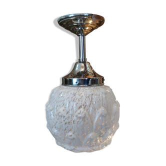 Small art deco chandelier from the 30s. The electricity has been redone. And works. Ready to plug in. Brass socket billonette b22. Fast and neat colissimo shipping.
