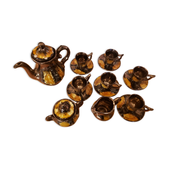 Coffee set (coffee pot + 12 cups) signed Morvan - Gaston Gaubier, 1970s. Teapot. Height 25 cm. Length 23.5 cm. Diameter 16 cm. Cups. Height 5 cm. Diameter 7 cm. Very good condition.