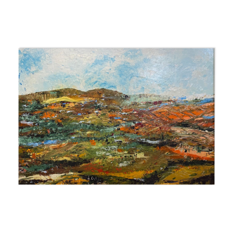 The spectacular evening sky is the main event of this powerful en plein air painting. With bold, dynamic brush strokes, the artist beautifully captures the blazing rays of the setting sun, contrasting warm orange with vibrant blue and casting shadows across the landscape. An evening mist settling in the distance trees. A highly expressive piece capturing the expressive energy of the painter towards his subject. This view over the thames from richmond terrace, made recognisable by the likes of turner, reynolds and wordsworth, has been described by sir walter scott as an 'unrivalled landscape'. Artist name: jackson gary. Approx date: signed and dated 12/16. Board size: h 50 cm X w 60 cm. Medium: oil on board. Condition: good.