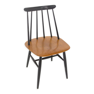 So design! Scandinavian style chair type "fanett" by ilmari tapiovaara. Seat in solid wood and teak veneer. Base and back in black lacquered beech. A design icon. Very good state. Tiny traces of use. Height: 84 cm. Width: 42 cm. Depth: 43 cm. Weight: 5 kg.