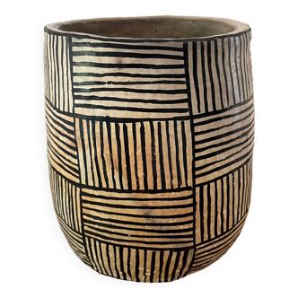 Round shield in fang wood, carved in cameroon. Homemade. It can be easily integrated into any interior to which it will confer a center of visual attraction. Shields were traditionally used in cameroon by young people during initiation ceremonies as warriors. These are objects with black and white shield personal identification symbols and tribal. Wall decoration element to hang on the wall or to be placed on a required hanging device. Superb wall decoration, to be laid by 1 or more of the same size of different size. All our creations are handmade, each element is unique and none of them will ever be the same. Any imperfection must be celebrated as a tribute to the work of our talented craftsmen. We think it adds to their beauty and charm. Approximate size sometimes. Nb: you can also order it on a larger or smaller size.