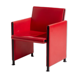 This sculptural armchair was produced by the renowned Italian manufacturer Matteo Grassi, internationally recognized for its exceptional leather craftsmanship and refined modern design. The chair is upholstered in two-tone greenish-grey leather, a sophisticated colour combination that enhances the architectural quality of the form. The design features gently curved side panels and a distinctive floating backrest, giving the piece a strong yet elegant visual presence. The chair is mounted on discreet caster wheels, allowing easy movement while preserving a stable and grounded seating experience. The piece was originally commissioned directly from the manufacturer in 1994 by its first owner, confirming both its authenticity and provenance. Visible signs of use are present, consistent with age and natural leather patina; however, the chair remains structurally stable and fully functional. Ideal for an office, meeting room, or minimalist waiting area, this armchair exemplifies late 20th-century Italian design, combining comfort, functionality, and sculptural clarity—hallmarks of Matteo Grassi furniture.