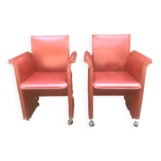 Italian leather armchair on casters by Matteo Grassi, 1990s