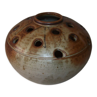 Two vases from the 70s. Mat flower stand, diameter 15cm, height 12cm. Enamelled vase diameter 13cm height 9cm.