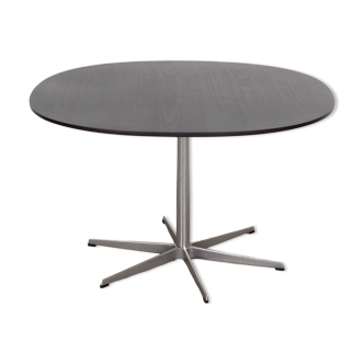 Vintage Eames round table for Vitra in white melamine, wood, and metal.