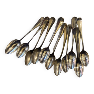 Set of 12 silver-plated teaspoons. Net model. Good condition, no silvering. Note a few minor scratches from use. Length: 14.5 cm total weight: 350 g packaged in a new black cardboard box. Shipping possible by mondial relay for only 5.00 e, or by colissimo 8.50 e (2023 price). For certain european countries count 9.70 e in mondial relay, home delivery. (-belgium-spain-italy -netherlands-luxembourg-portugal-austria) for great britain shipping by colissimo only, ask for the combined shipping rate in the event of multiple purchases.