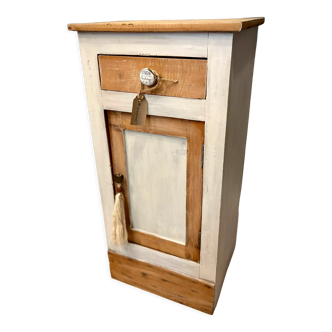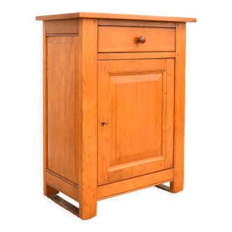 Buffet Les Arcs. Solid pine furniture, one drawer and one door serving two storage spaces. Good general condition, some scratches from use. It will be ideal for furnishing an apartment in the mountains.