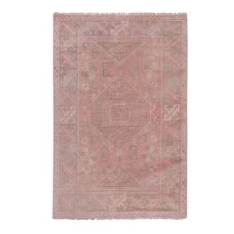 Beautiful antique Khotan hand-knotted rug made in the Uyghur region of East Turkestan, wonderful archaic folk art. All natural vegetable dyes, burnt orange background colour with muted purples and blues, serrated borders, 3 archaic medallions. Distressed condition, structurally sound.