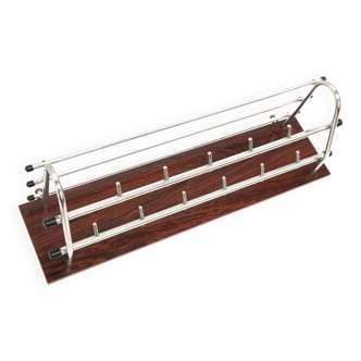 Old door-to-wearers. Top shelf. 5 brackets. Good condition of use, silver metal and black teak support. 1960s-70s. 80 cm wide. Detachment of the wall: 28 cm. 12 cm high.